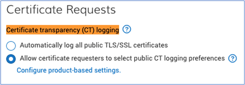 - Expand the Certificate details section. Select Logged to public Certificate Transparency (CT) logs.