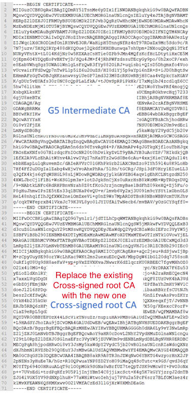 | Replace this cross-signed root CA certificate | With the new cross-signed root CA certificate |