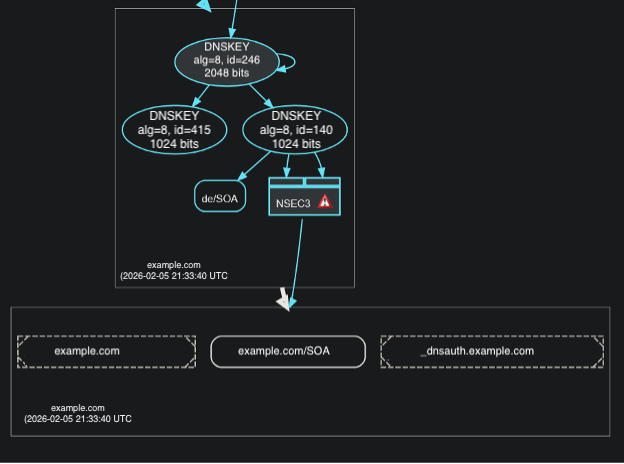 The errors in this section are not DigiCert system-side errors. We provide them to help you troubleshoot DNSSEC errors with your own DNS provider, unless you use DigiCert's DNS services: UltraDNS or DigiCert DNS Essentials (formerly DNS Made Easy).