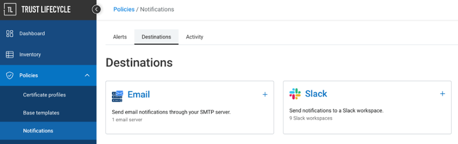 Once your workspace is connected, you can configure which certificate events trigger notifications.