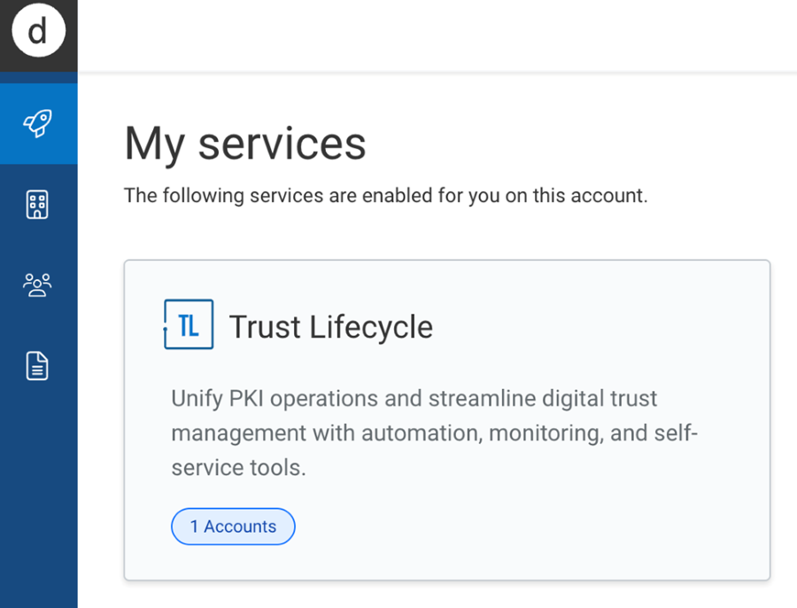 Sign in to your DigiCert ONE account and navigate to the appropriate service, such as Trust Lifecycle Manager (TLM).