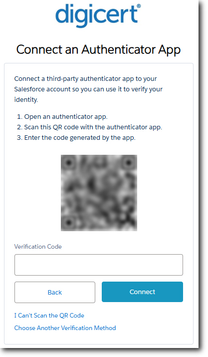 Enter the Verification Code displayed in your authenticator app and click Connect.