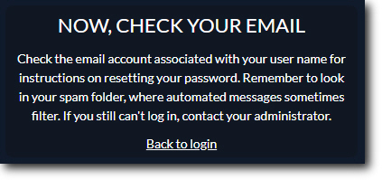 3. The page will confirm that an email has been sent to you. You will receive an email confirming the password reset request. The email will include a password reset link.