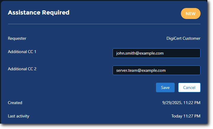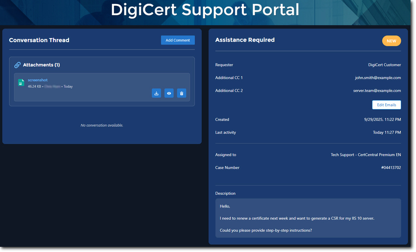 Note: When a new comment is added to the case, the Requester as well as any CC Email recipients will be notified via email.