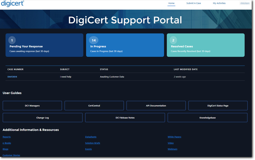 The DigiCert Support Portal is a platform designed for clients who are on DigiCert’s Premium support plan. The portal allows you to create and manage support cases.