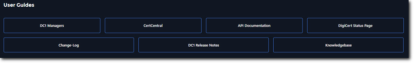 The User Guides section contains links to various resources, such as certificate management documentation.