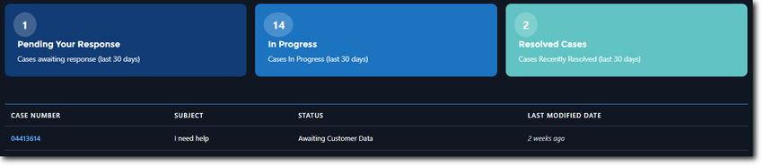 When you log in to the portal, you will be taken to the Home page. This page contains a dashboard which allows you to view your cases and access a variety of resources.