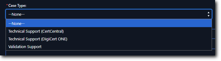 3. Select the support team which the query is addressed to from the Case Type drop-down field.