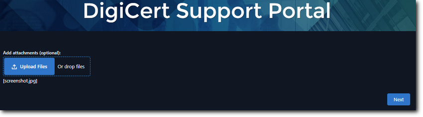 6. If you need to attach any files to your case, such as logs or a CSR, click Upload files to select the required files. Alternatively, drag and drop the required files over the Or drop files field.